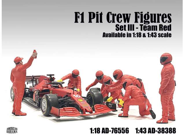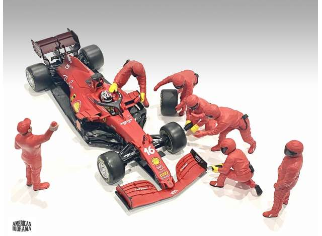 1/18 F1 Pit Crew Figures set #3, Team Red 7 figures.