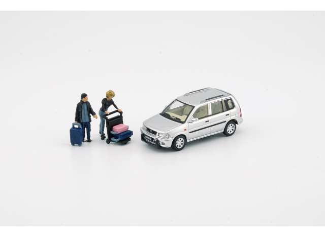 1/64 Mazda 1994 Demio, silver with some figures