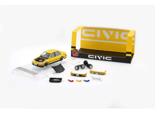 1/64 1991 Honda Civic EF2 (LHD), Custom Yellow BlK Bonnet