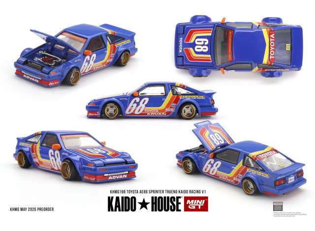1/64 1983 Toyota AE86 Sprinter Trueno *Kaido Racing* V1, blue/orange/red/yellow