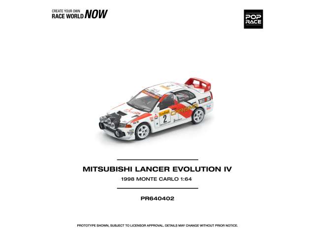 1/64 1998 Mitsubishi Lancer Evolution IV Monte Carlo Rally, white/red/orange
