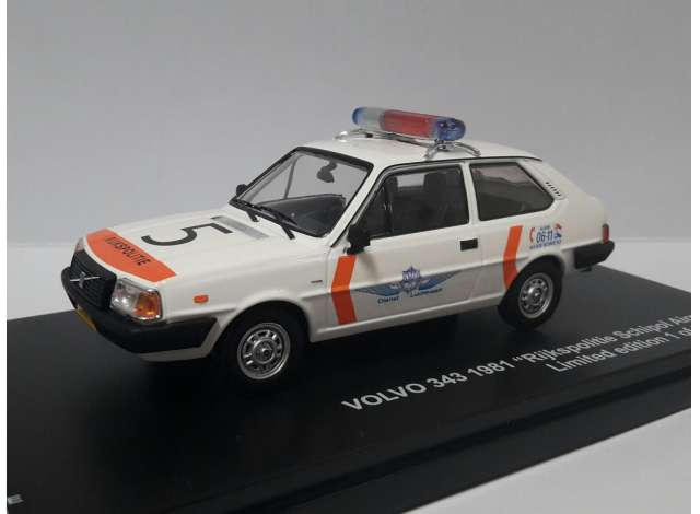 1981 Volvo 343 *Rijkspolitie Schiphol Airport*, white with original long bumpers.