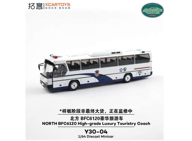 1/64 XCARTOYS North BFC6120 Luxury Tourist Coach Public Security, white/blue