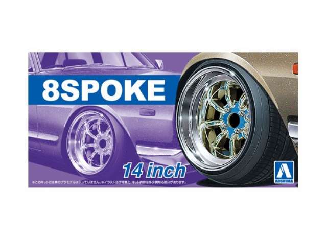 #43 1/24 8 Spoke 14inch wheel and tire set of 4, plastic modelkit