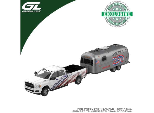 1/64 2024 Ram 2500 Laramie with 2026 Airstream America 250 Edition, white/blue/red