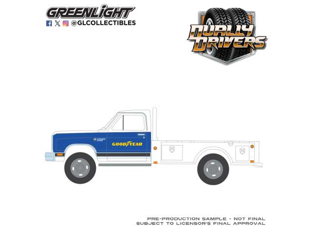 1/64 1981 Dodge Ram W350 Power Ram Dually Flatbed Goodyear, *Dually Drivers Series 17*, white/blue