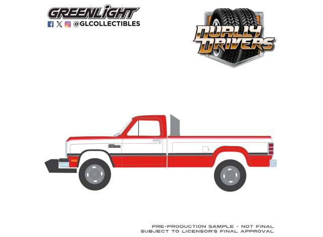 1/64 1993 Dodge Ram D350 Dually with Exhaust + Bumper Weights, *Dually Drivers Series 17*, red/white