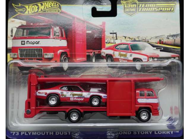 1/64 1973 Plymouth Duster and Saecond Story Lorry, red