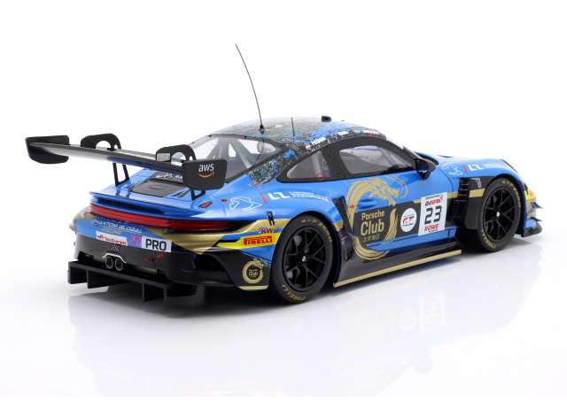 1/18 2024 Porsche 911 GT3 R #23 Joel Eriksson/Jaxon Evans/Thomas Preining, 24h Spa Phantom Global Racing, blue