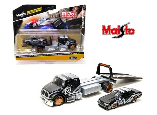 1/64 International Durastar Flatbed with 1988 Ford Mustang LX #22 *Toyo Tires*, black/silver