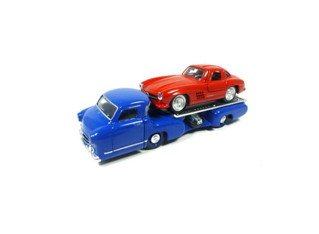 1/64 1955 Mercedes-Benz Renntransporter + Mercedes-Benz SL, blue/red