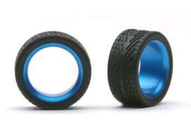 aluminium polished Light Blue 23inch sleeves w/rubber tires (set of 4)