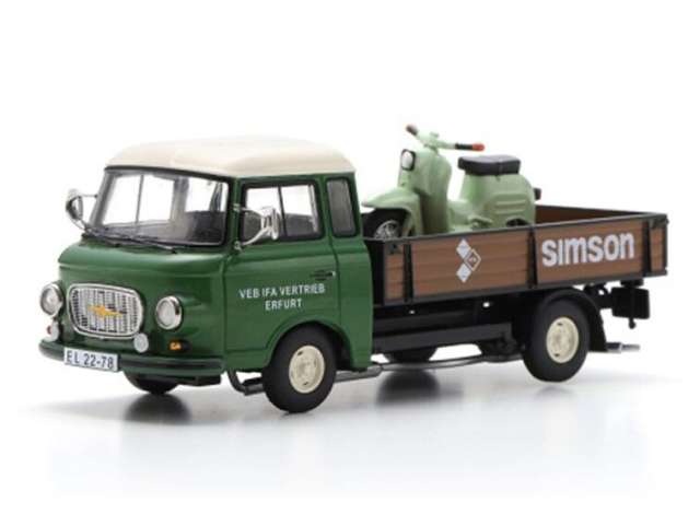 1/43 Barkas B1000 with Simson Schwalbe, *Simson Service*, green/brown